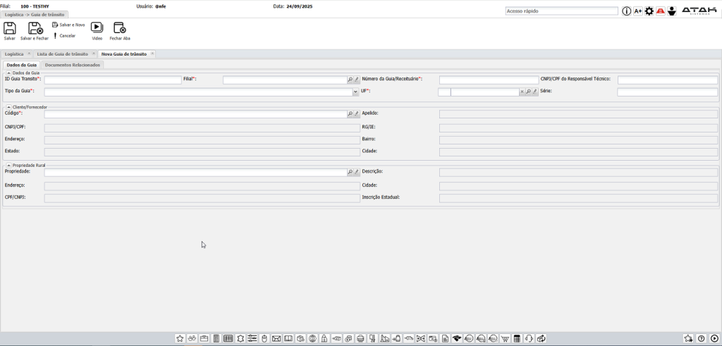 Como cadastrar a Guia de Trânsito/Defensivo Agrícola no ERP ATAK?