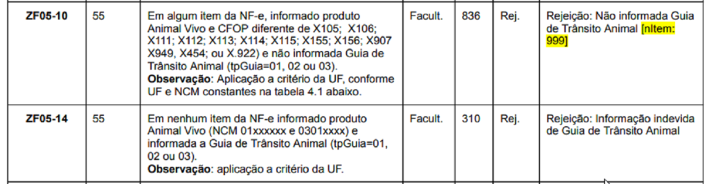 A implementação das validações externas aplica critérios diferenciados conforme a Unidade Federativa de origem. De acordo com a tabela oficial da SEFAZ, os estados da Bahia (BA), Goiás (GO), Maranhão (MA) e Mato Grosso (MT) adotaram a regra ZF05-10 para operações envolvendo gado bovino (classificação NCM 0102XXXX).