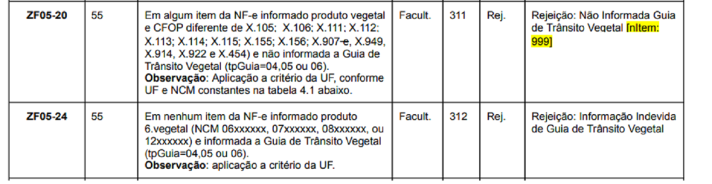 A regra ZF05-20, aplicável a produtos de origem vegetal, permanece inativa para todas as Unidades Federativas até o momento.