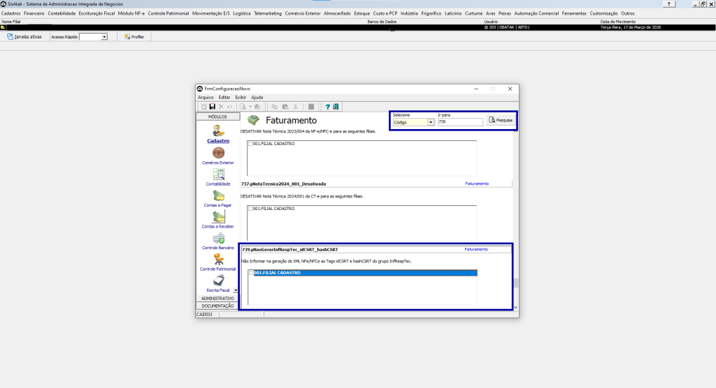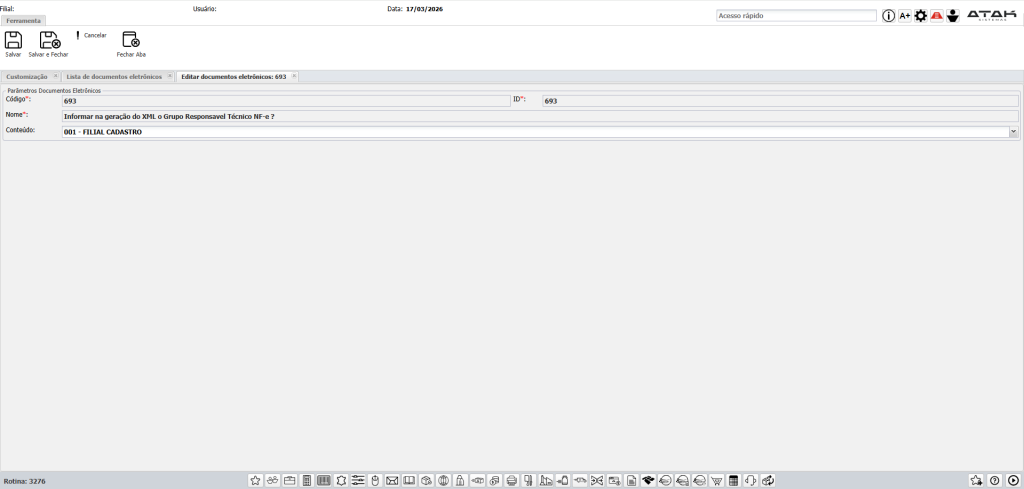 Para habilitar a geração das tags, é necessário configurar o parâmetro 693 em: ERP > Customização > Parâmetros > Documentos Eletrônicos