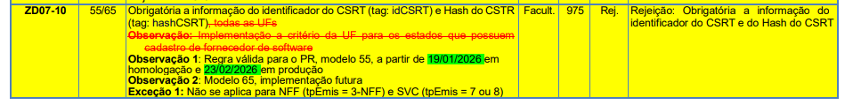 Obs: Nota-se que na rejeição acima publicada na NT é mencionada a data de validação em produção na UF do PR a partir de 23/02/2026, porém em recentes comunicados da própria SEFAZ do PR, foi divulgada a data 01/04/2026.