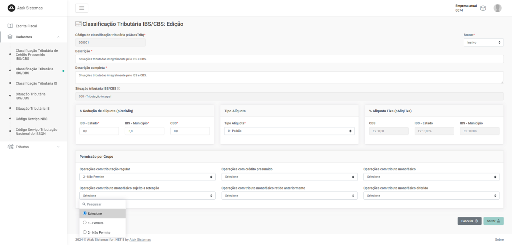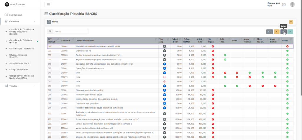 Como editar um registro na rotina de Classificação Tributária de IBS/CBS