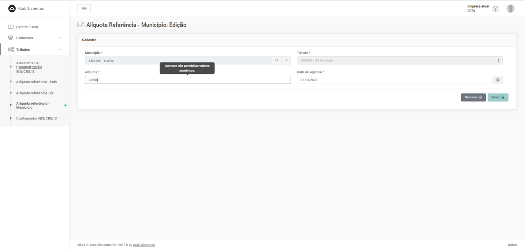 As alíquotas configuradas nesta rotina são utilizadas automaticamente nos processos de cálculo tributário e emissão de documentos fiscais eletrônicos, assegurando conformidade e preparando os municípios para o período de transição gradual previsto até 2033.