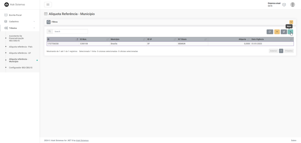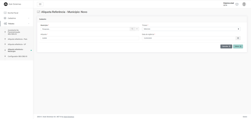 A funcionalidade Alíquota Referência por Município foi desenvolvida no sistema ERPAtak para gerenciar as alíquotas do IBS (Imposto sobre Bens e Serviços) em âmbito municipal, atendendo às exigências estabelecidas pela Lei Complementar 214/2025.