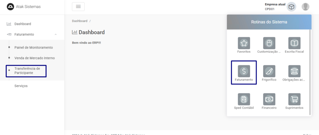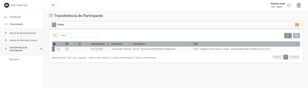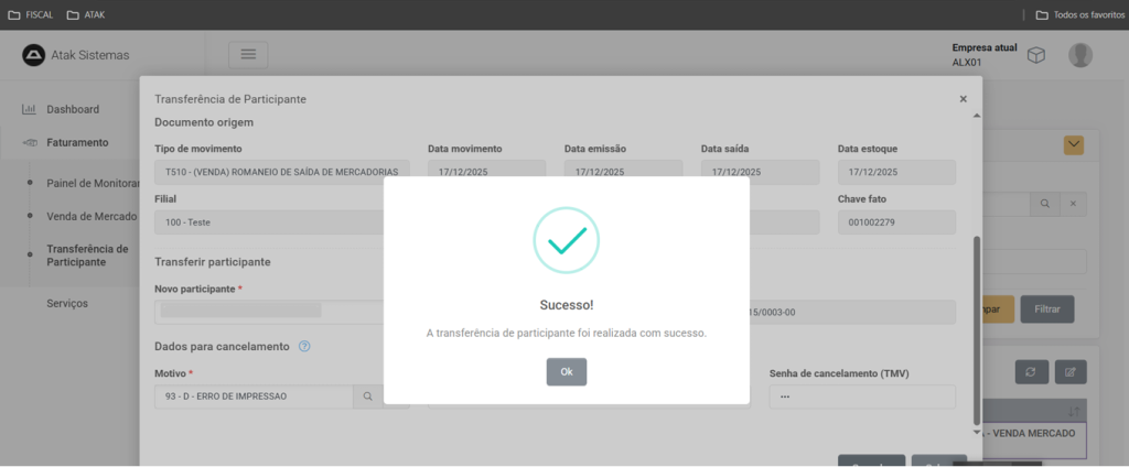 Acesse, ERPAtakV2 → Módulo Faturamento → Transferência de Participante.