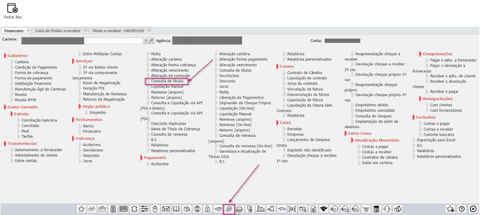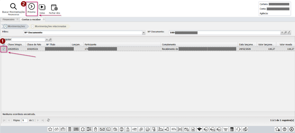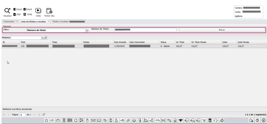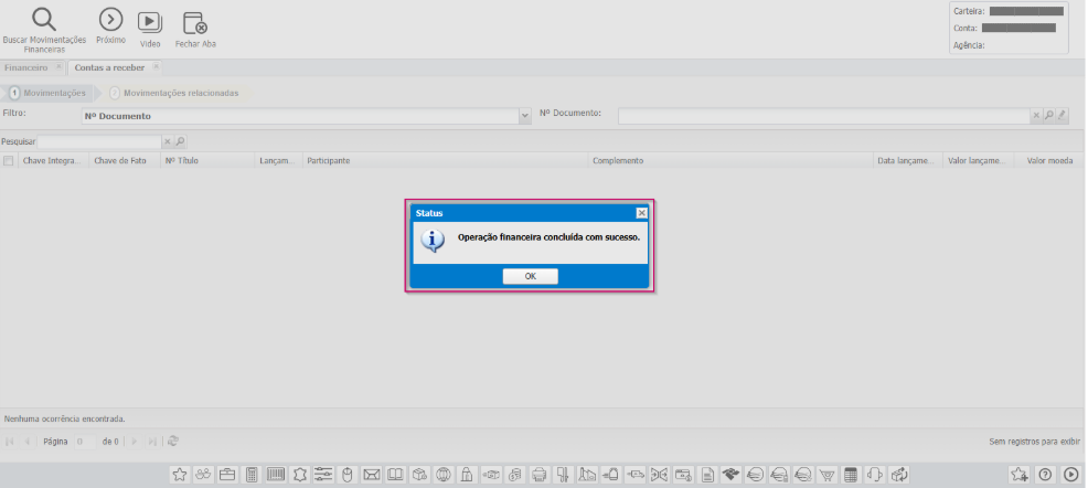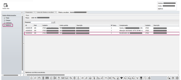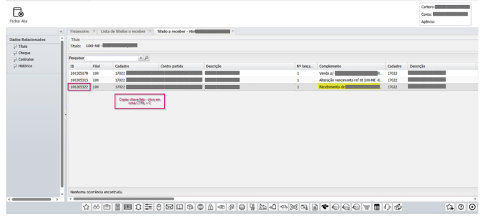 O sistema exibirá os títulos vinculados àquela movimentação.