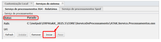 - Após iniciar ou reiniciar o serviço, teste novamente a emissão do relatório.
