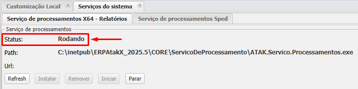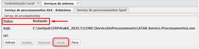 - Caso o status não altere para Rodando, verifique permissões de usuário ou entre em contato com o suporte técnico.