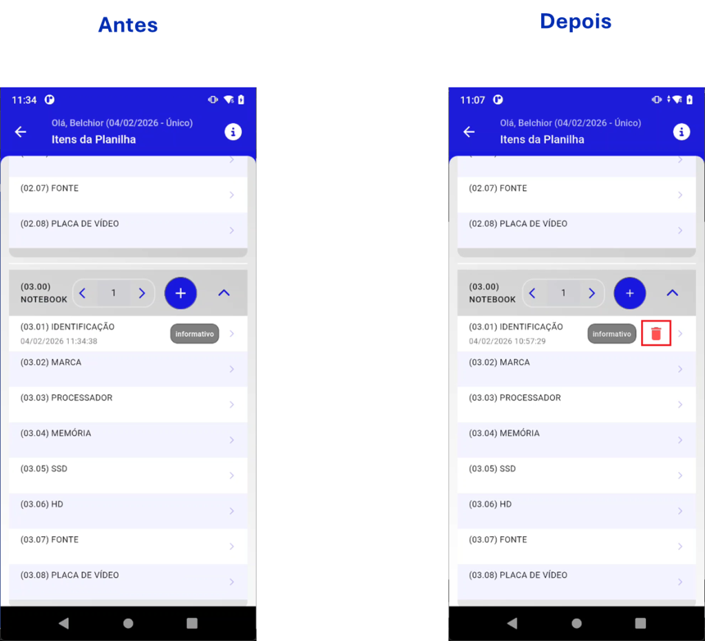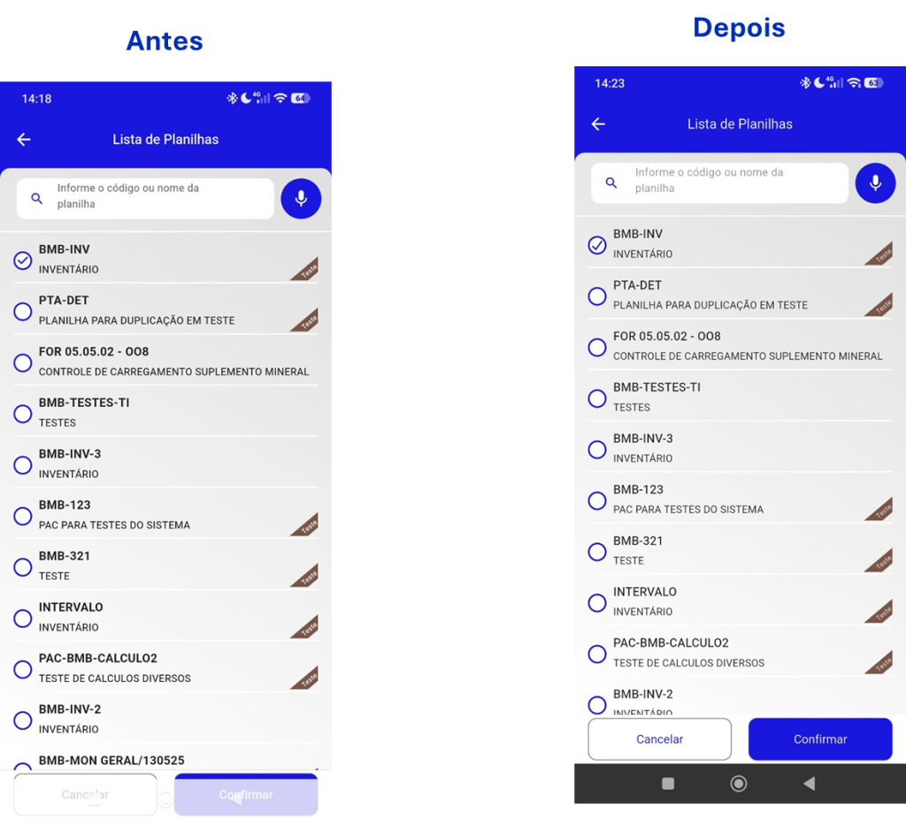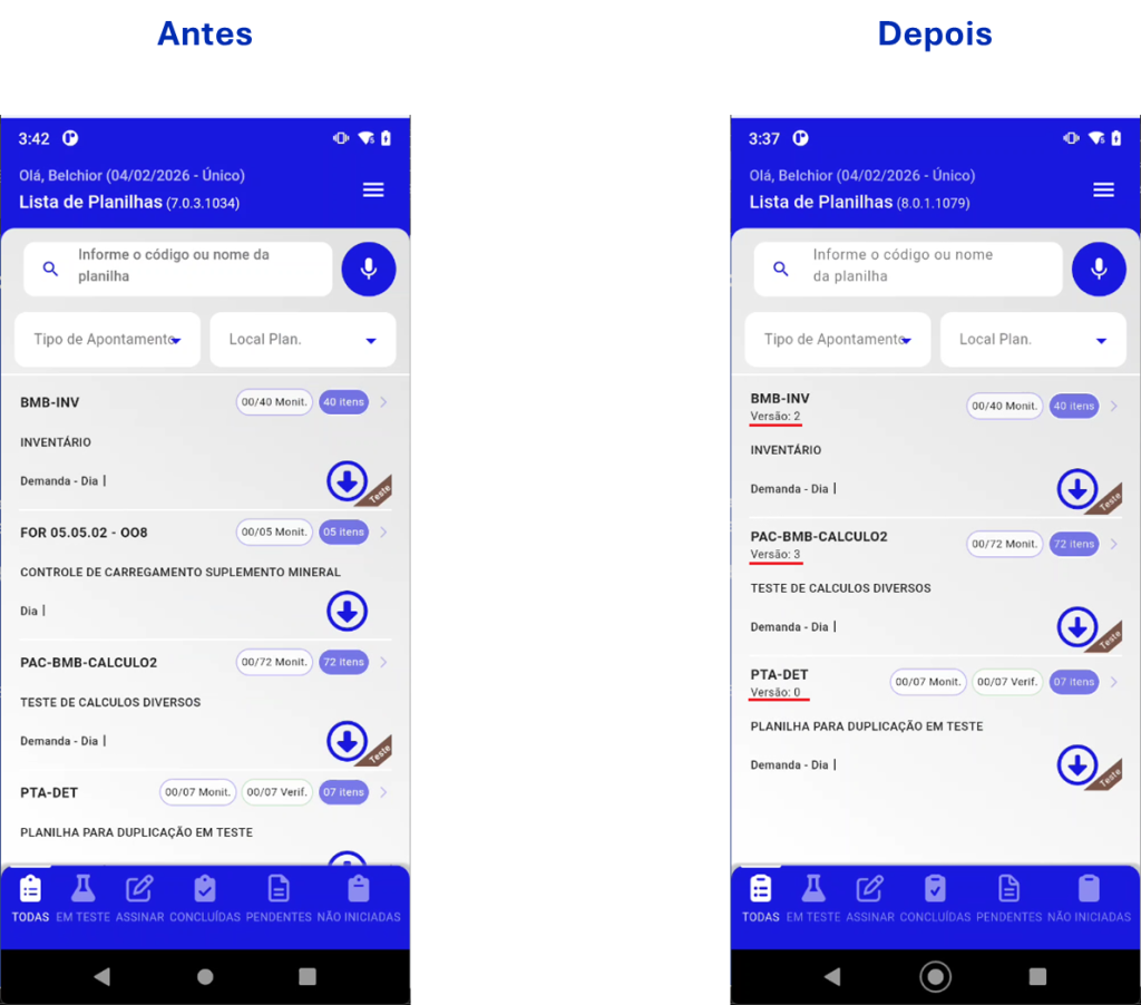 - Ao baixar uma planilha no aplicativo, não era possível visualizar a versão do documento, dificultando o controle de atualizações e a rastreabilidade.