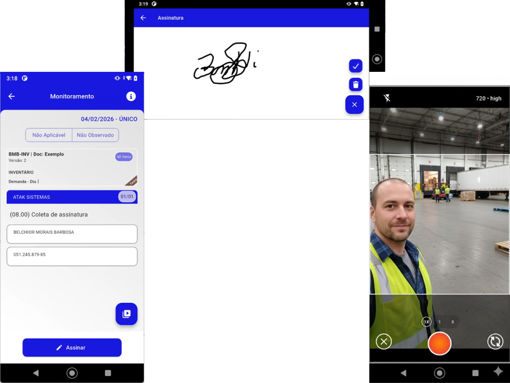 - Nova funcionalidade para permitir a coleta de assinaturas diretamente no aplicativo, especialmente em situações onde a assinatura precisa ser feita por pessoas externas, como motoristas e terceiros, que não possuem usuário cadastrado.