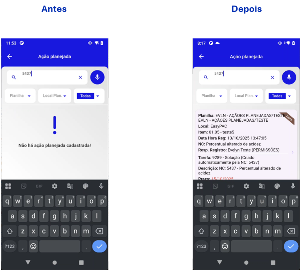- Anteriormente, a pesquisa no menu Ação Planejada se limitava a item, data e responsável do registro.