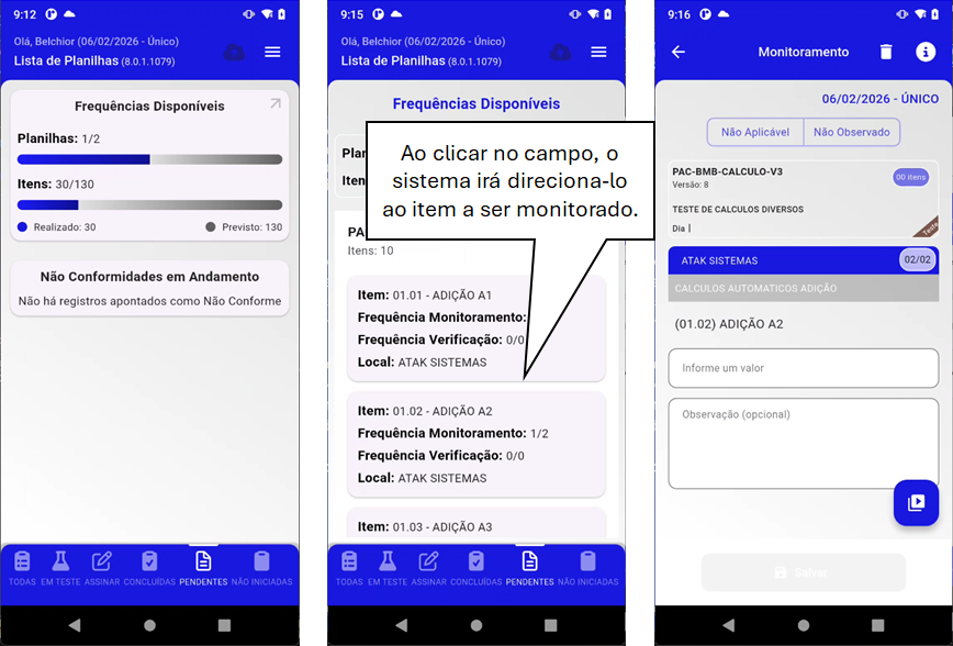 - Ao clicar no item, o sistema direciona automaticamente para o item que deve ser monitorado.